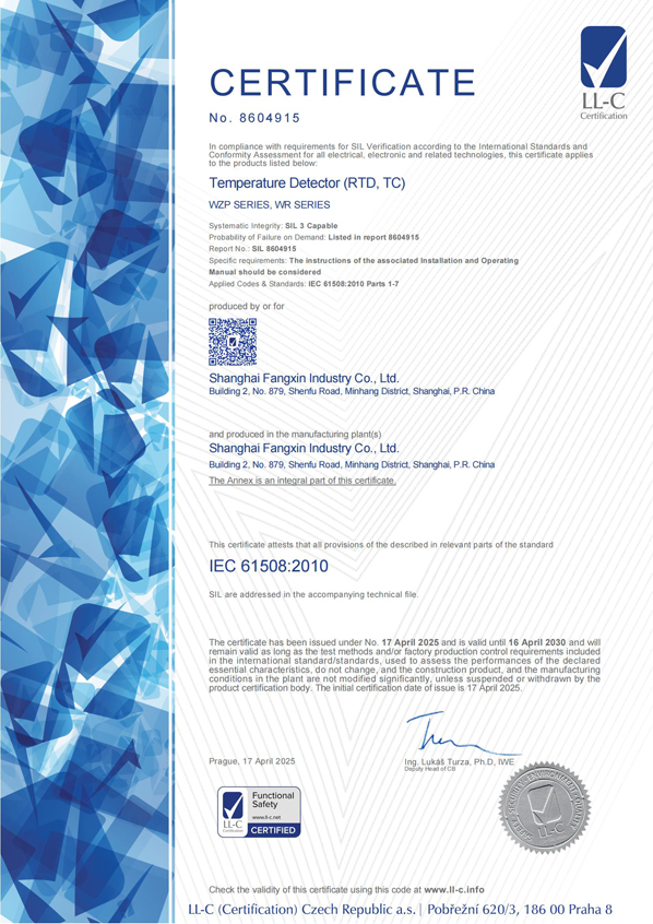 級精度產品制造計量許可證的極少數合法企業(yè)之一。并且率先采用了國際通用的分度號色標,從而使安裝在設備上的產品的分度號非常醒目,便于識別和更換,因此多年來受到熱工維檢人員的贊譽。